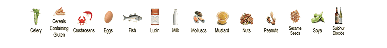 Most of our dishes contain Garlic, Soya, Gluten, Cooking Wine & Sesame Oil. Some of our dishes may contain these 14 allergens as follows: